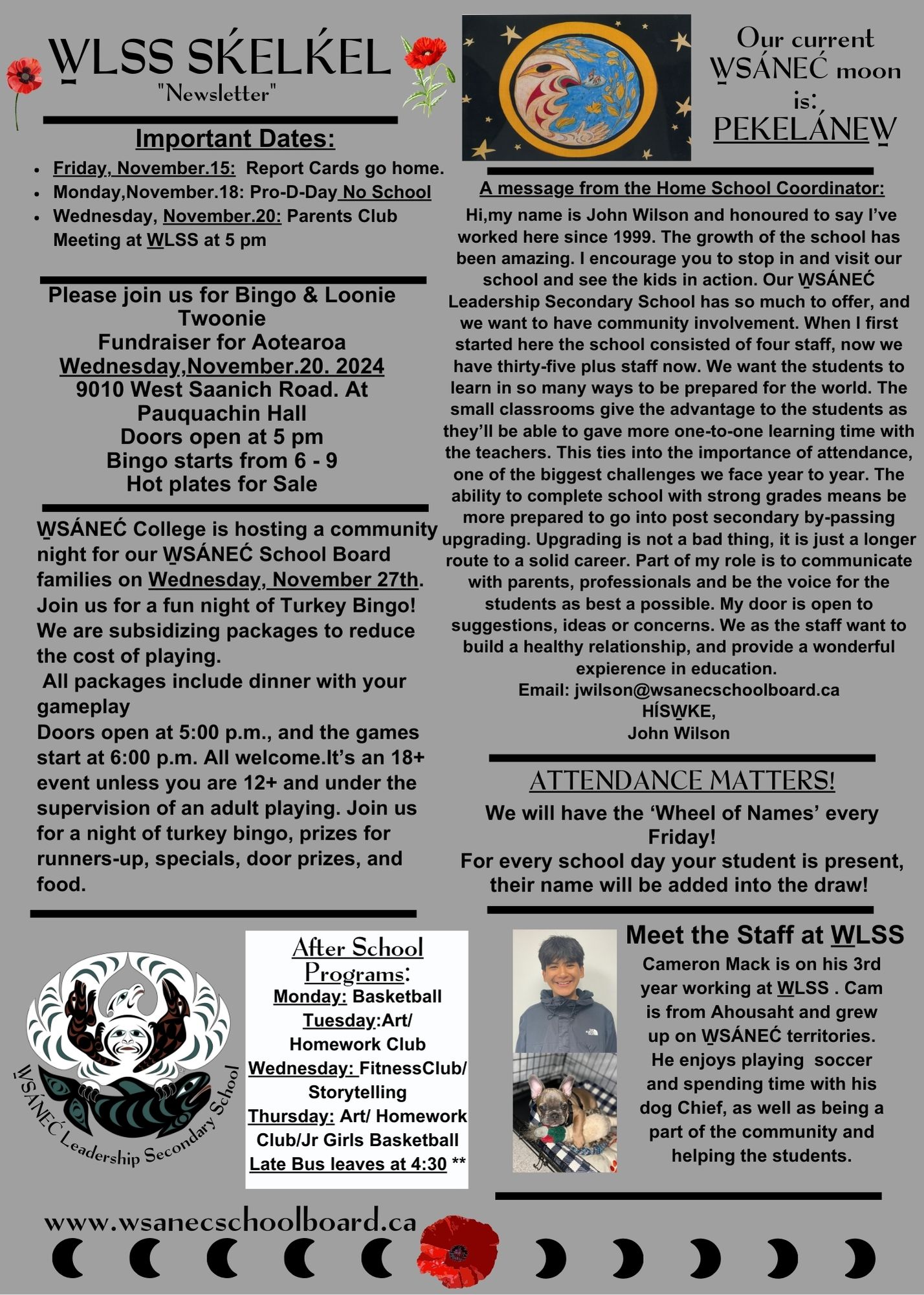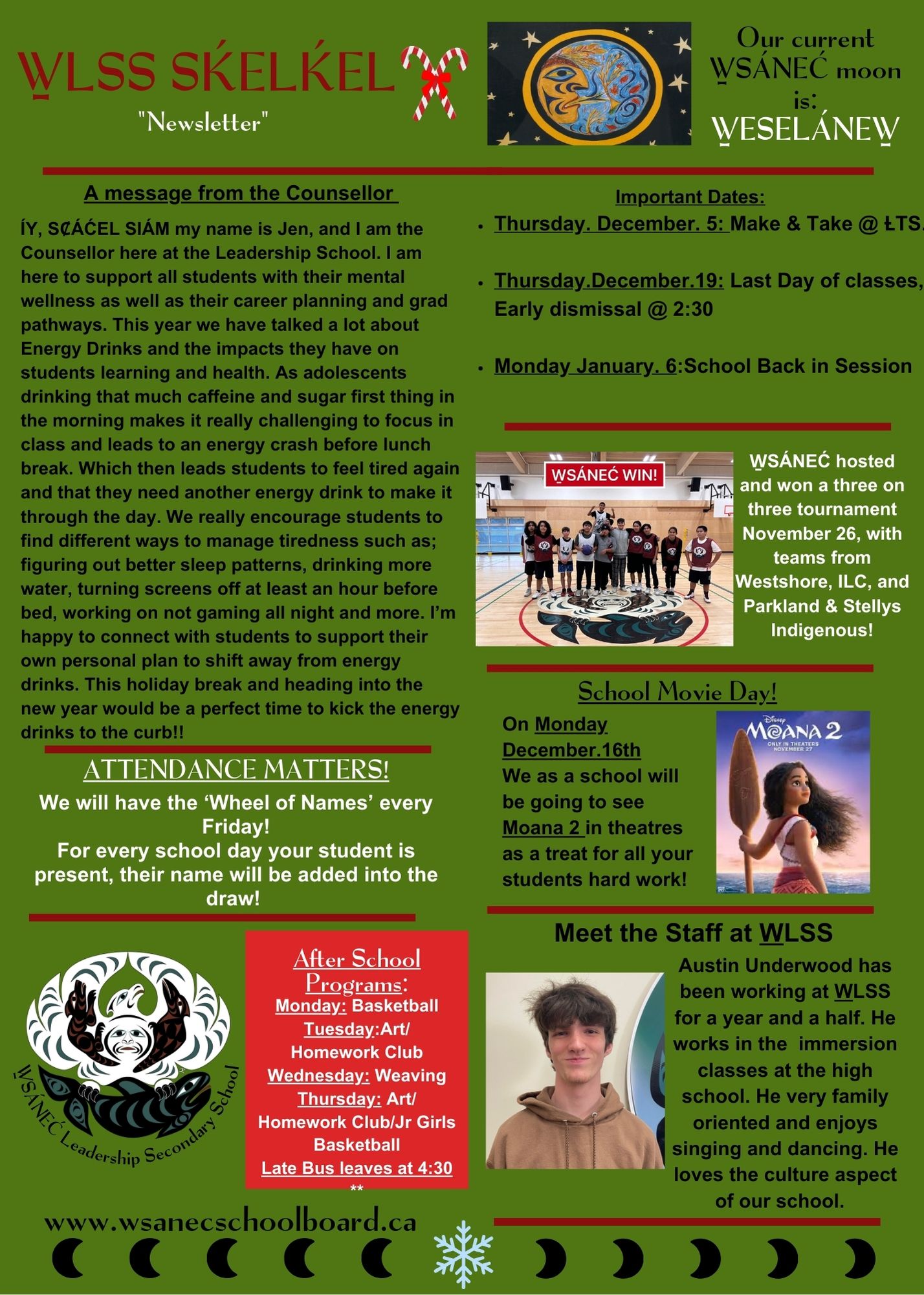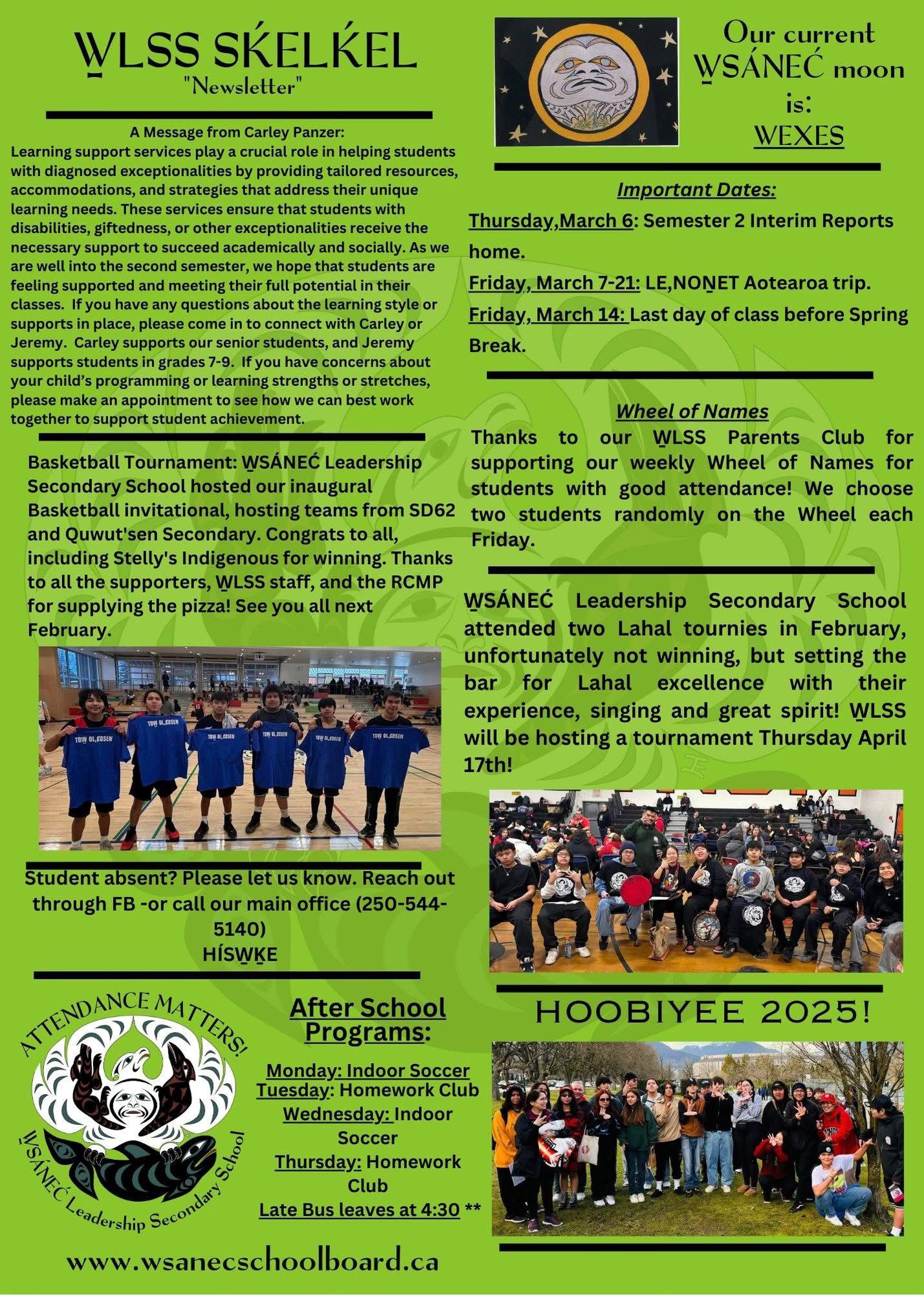 W̱LSS SḰELḰEL (Newsletter) - March 2025 Inside this issue: Message from Carley Panzer Important Dates W̱LSS Basketball
