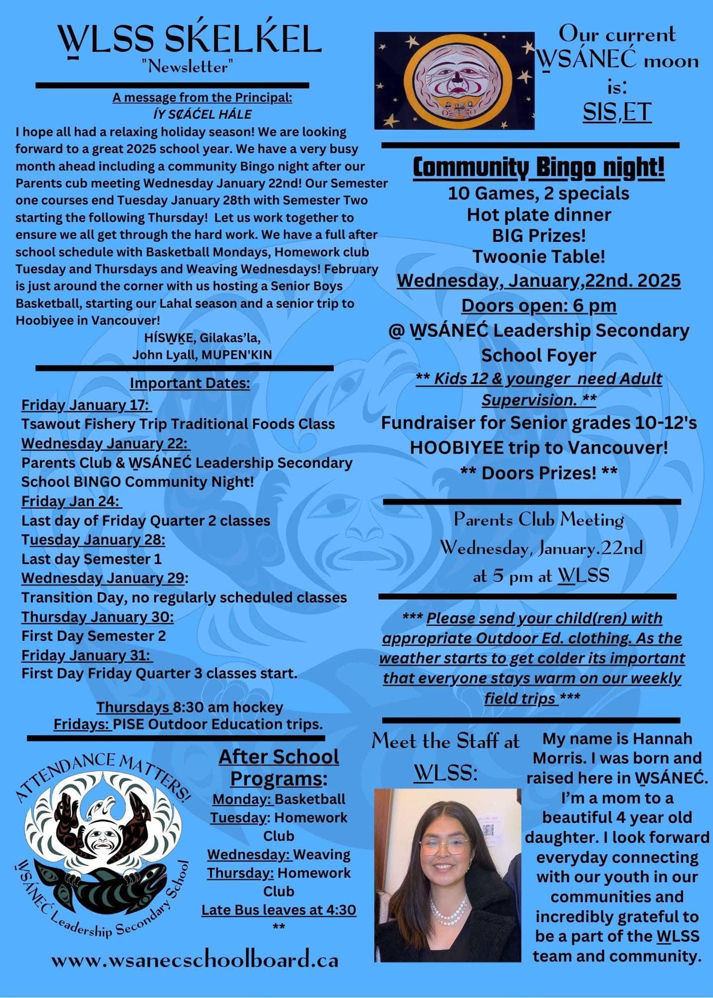 W̱LSS SḰELḰEL (Newsletter) - February 2025 Inside this issue: Message from SX̱EDŦELISIYE Important Dates Bake Sale! After School