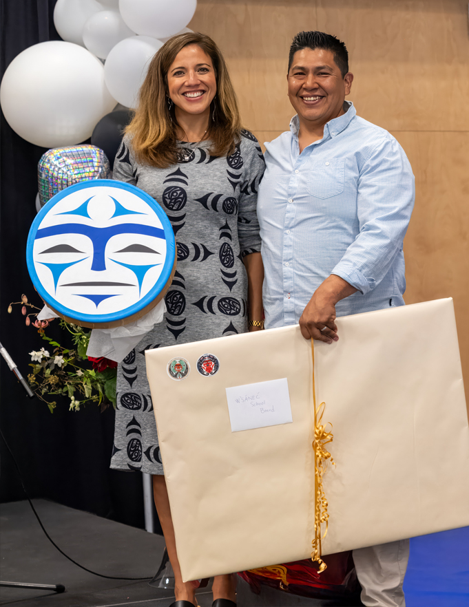 The W̱SÁNEĆ School Board provides educational programming, SENĆOŦEN language, and lifelong learning opportunities through the SȽEȽEMW̱ Child Development Centre, ȽÁU,WELṈEW̱ Tribal School, LENOṈET SCUL,ÁUTW̱, W̱SÁNEĆ Leadership Secondary School, and W̱SÁNEĆ College, serving over 500 learners. The W̱SÁNEĆ School Board is founded on W̱SÁNEĆ values and the principles of First Nations Control of First Nations Education, representing over 50 years of collaborative leadership and governance by the elected Chiefs and Councils of W̱JOȽEȽP/Tsartlip, SȾÁUTW̱/Tsawout, BOḰEĆEN/Pauquachin, and W̱SÍKEM/Tseycum First Nations.
