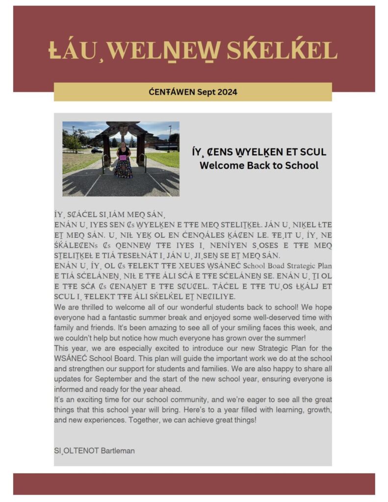 ȽÁU, WELṈEW̱  SḰELḰEL (Newsletter) – September 2024