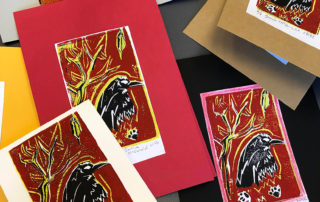 Everyone made a mini reduction print and turned the finished product into greeting cards on colourful card stock. It was delightful to see how each layer of ink transformed the image. The prints look like paintings with lush colours.