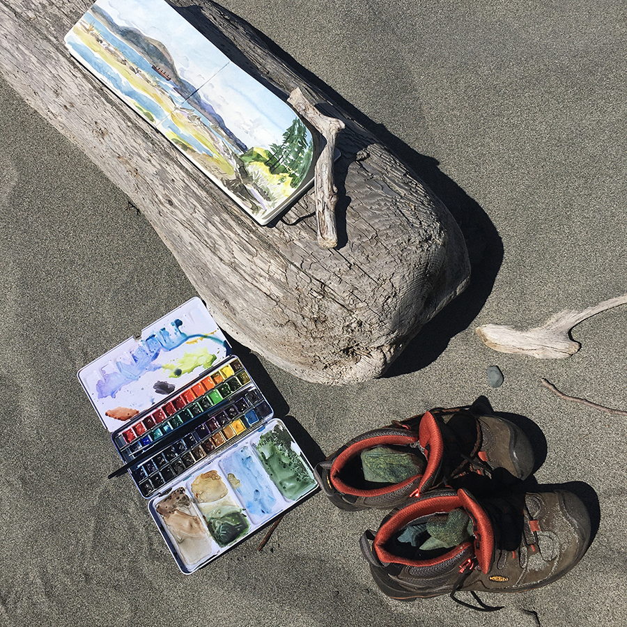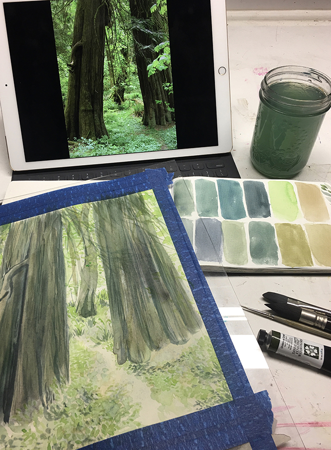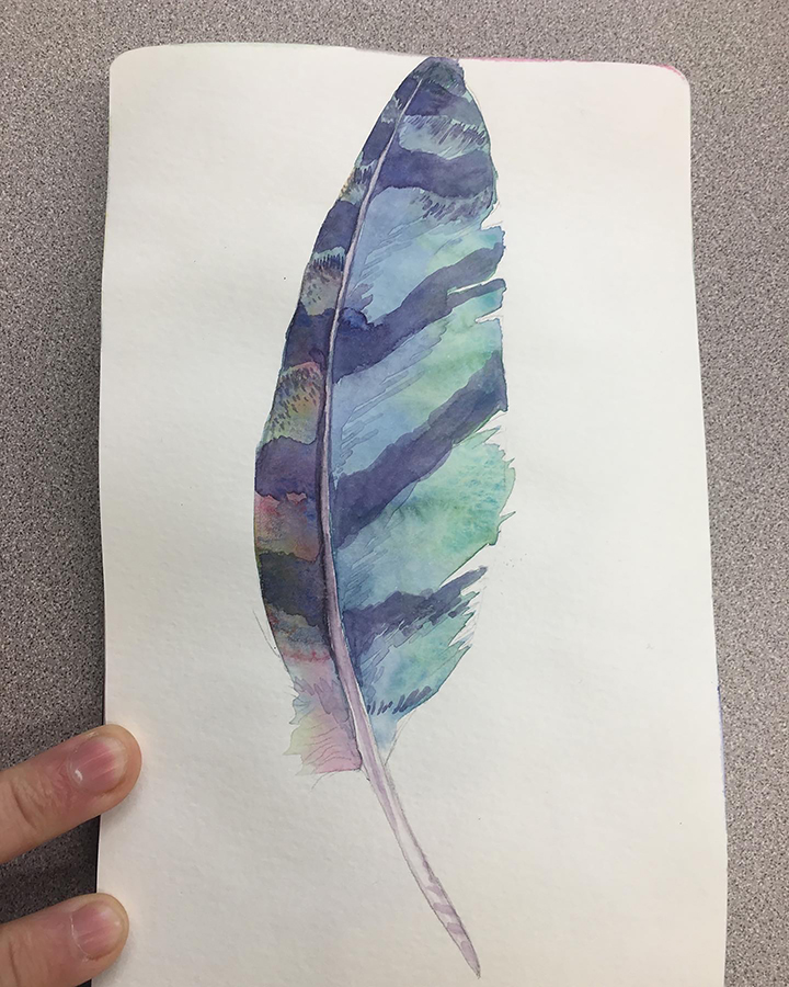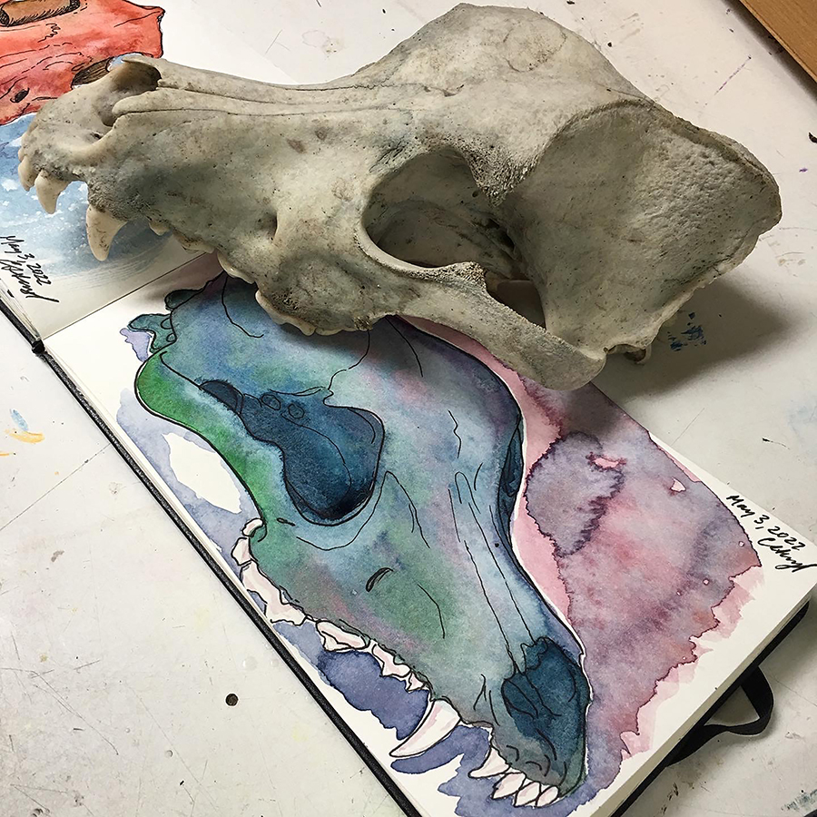 With the arrival of spring and warm(er) weather we switched to the semester two course, drawing and painting. I was able to return to in-person teaching. I decided to give a crash course on watercolour and ink sketching for students so we could have adventures outdoors with our sketchbooks. We learned some basic skills about watercolour washes, colour mixing, colour theory and sketching.